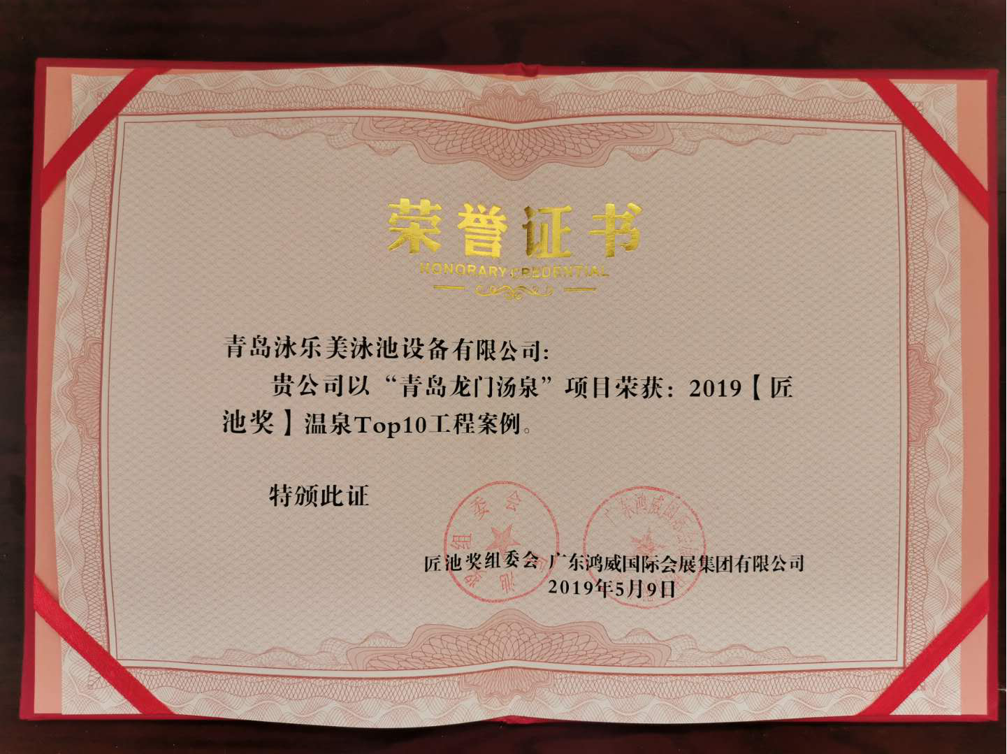 2019年5月9日,2019年亞洲泳池SPA博覽會暨【匠池獎】頒獎典禮在廣州?廣交會展館隆重舉行,青島泳樂美泳池設備有限公司應邀出席。